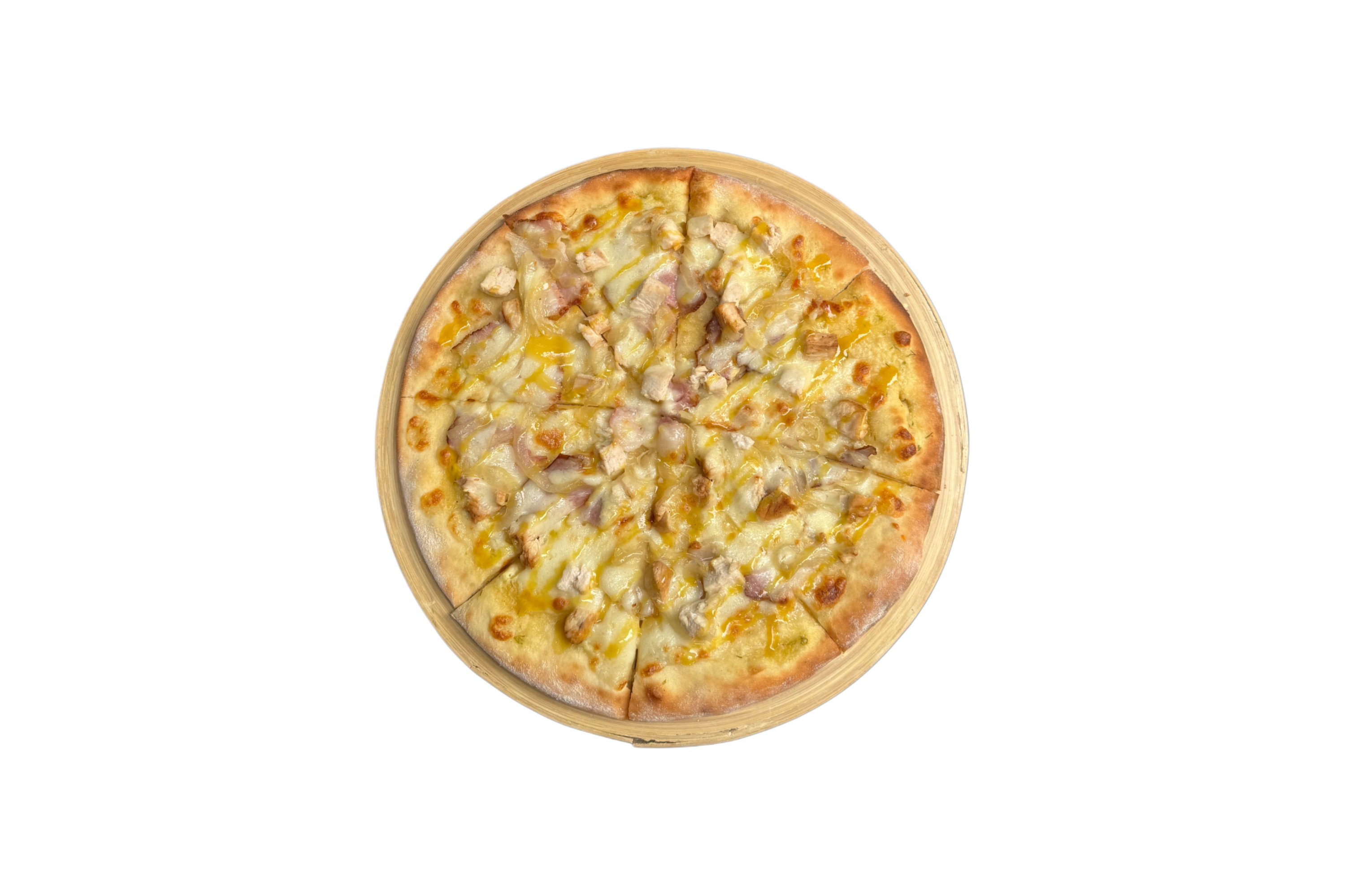 Соус Ранч, бекон, курка, карамелізована цибуля, сир Моцарела, медово-гірчичний соус